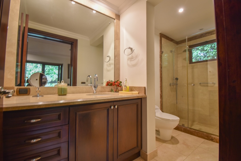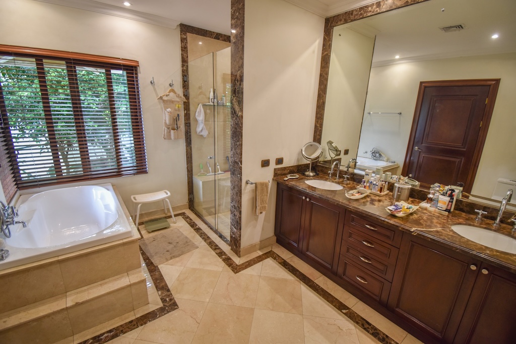 - Habitación principal con salida al jardín, A/C central, walk-in closet, tina y baño con doble lavamanos