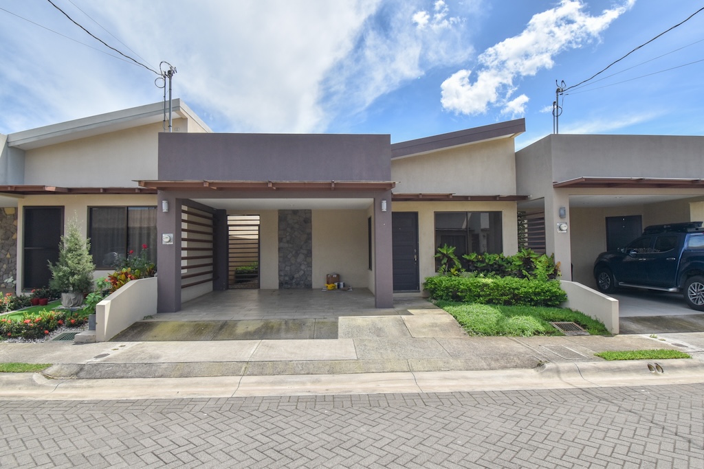 Casa de una sola planta ubicada en el Condominio Los Higuerones en Alajuela, la propiedad se distribuye de la siguiente manera:
