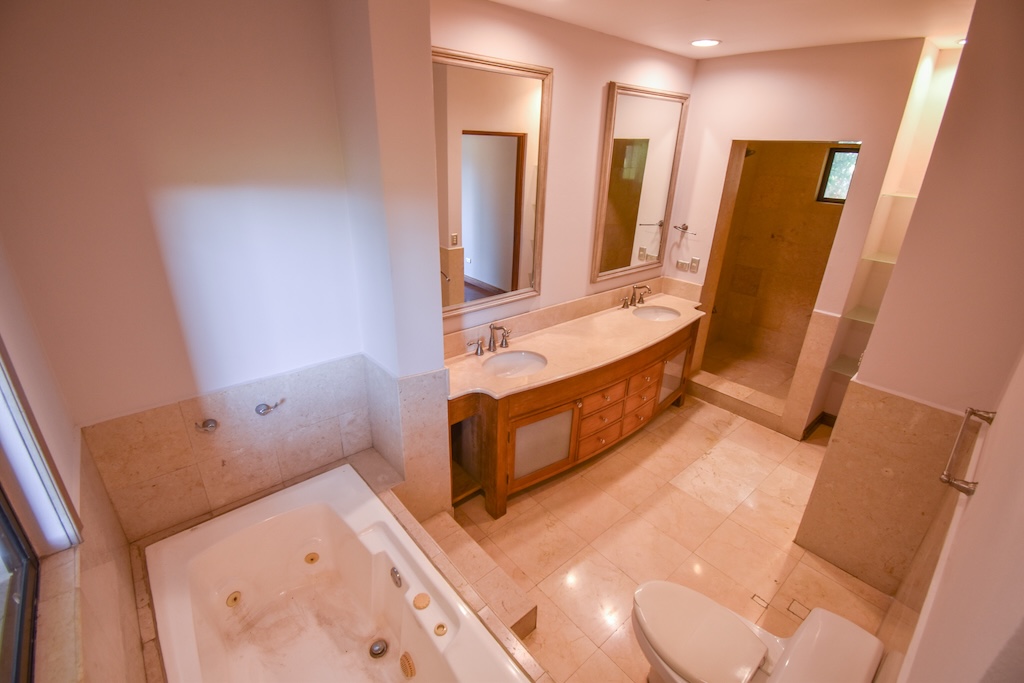 • Habitación principal amplia con A/C, walk in closet y baño completo con doble lava-manos, ducha y tina