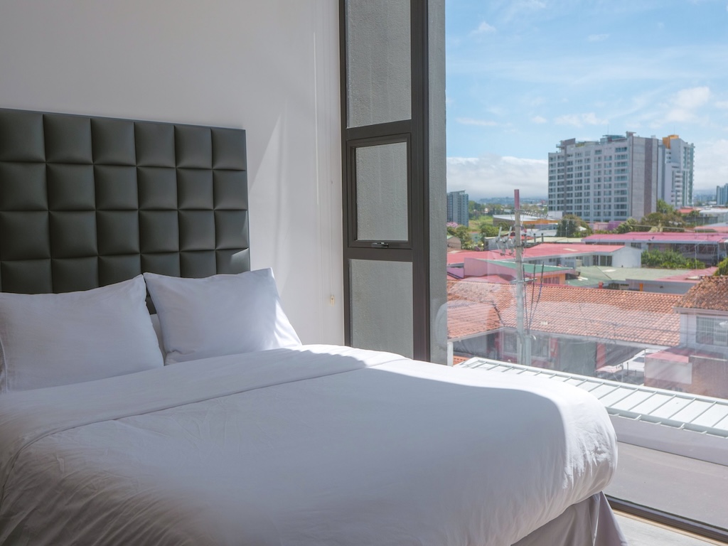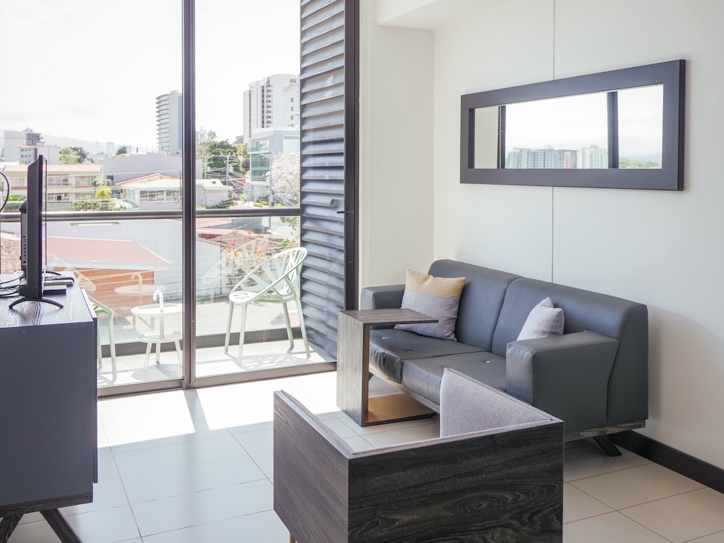 🛋️ Sala-comedor con techos altos y balcón con hermosa vista a la ciudad