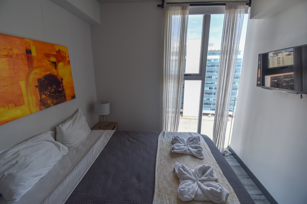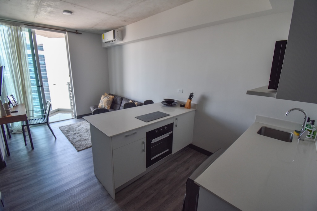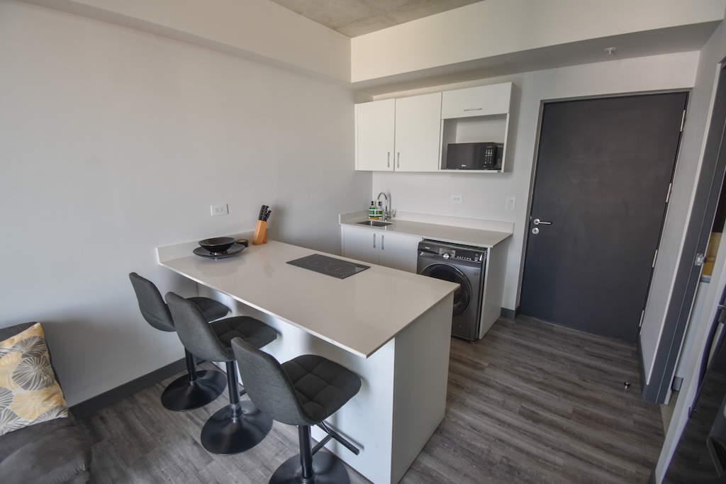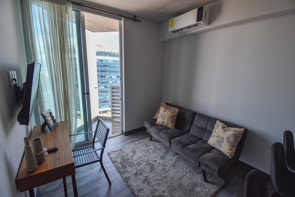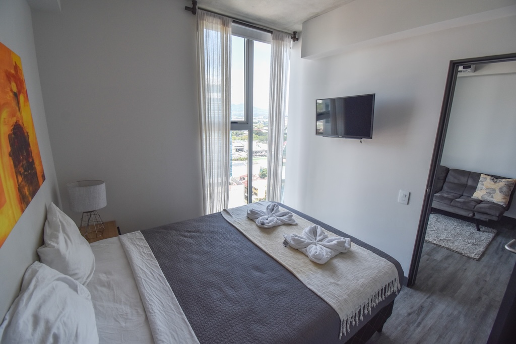 Apartamento totalmente amueblado de 1 habitación, ubicado en el Condominio SECRT Sabana. Se encuentra en un piso 16 y se distribuye de la siguiente manera:
