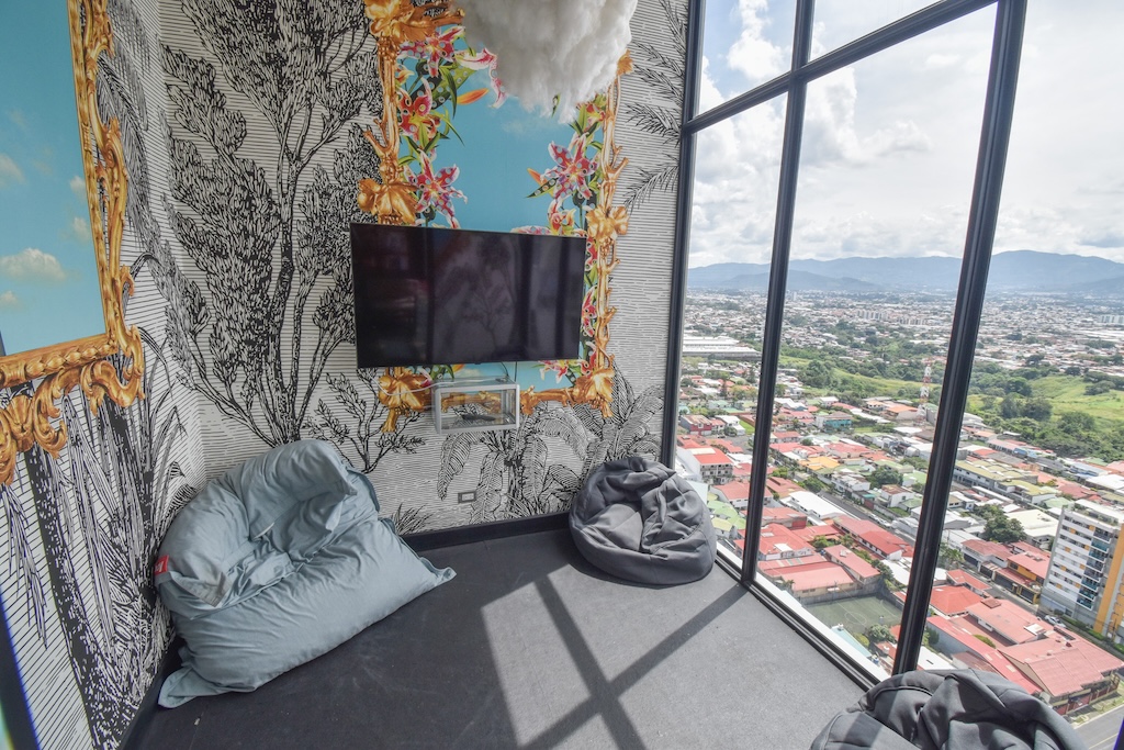 🌇 Terraza en el piso 32 con vistas 360° a San José y temática de playa para eventos sociales