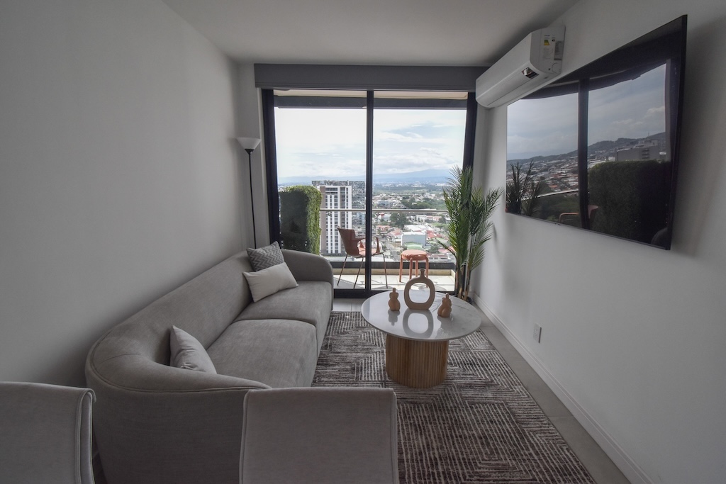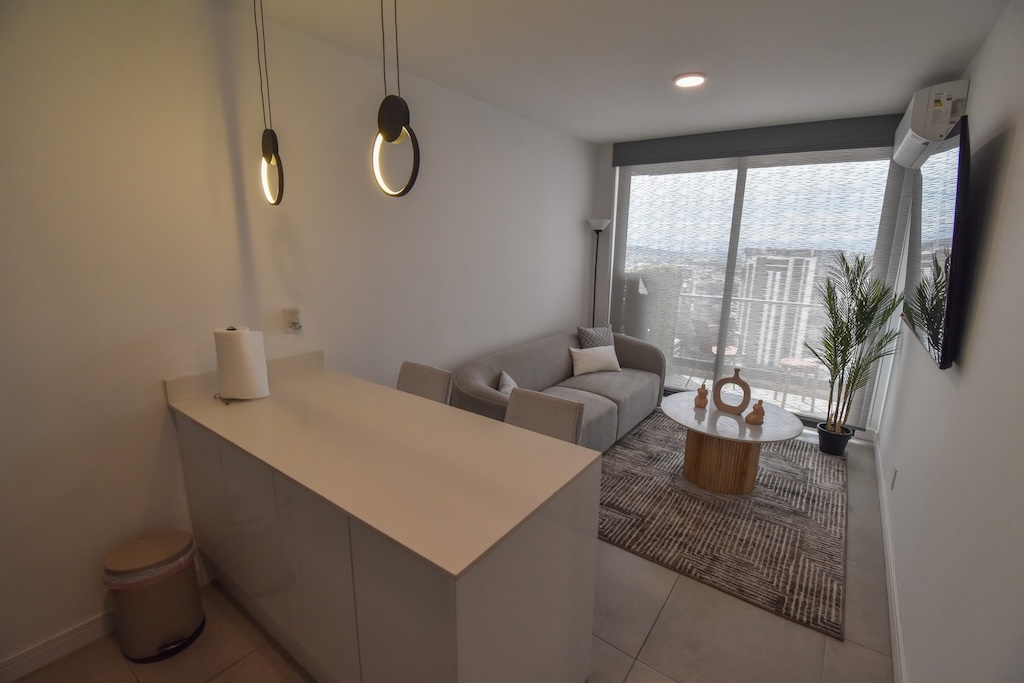 Apartamento totalmente amueblado y equipado de 1 solo nivel, ubicado en el piso 21, con excelente vista y distribución funcional.