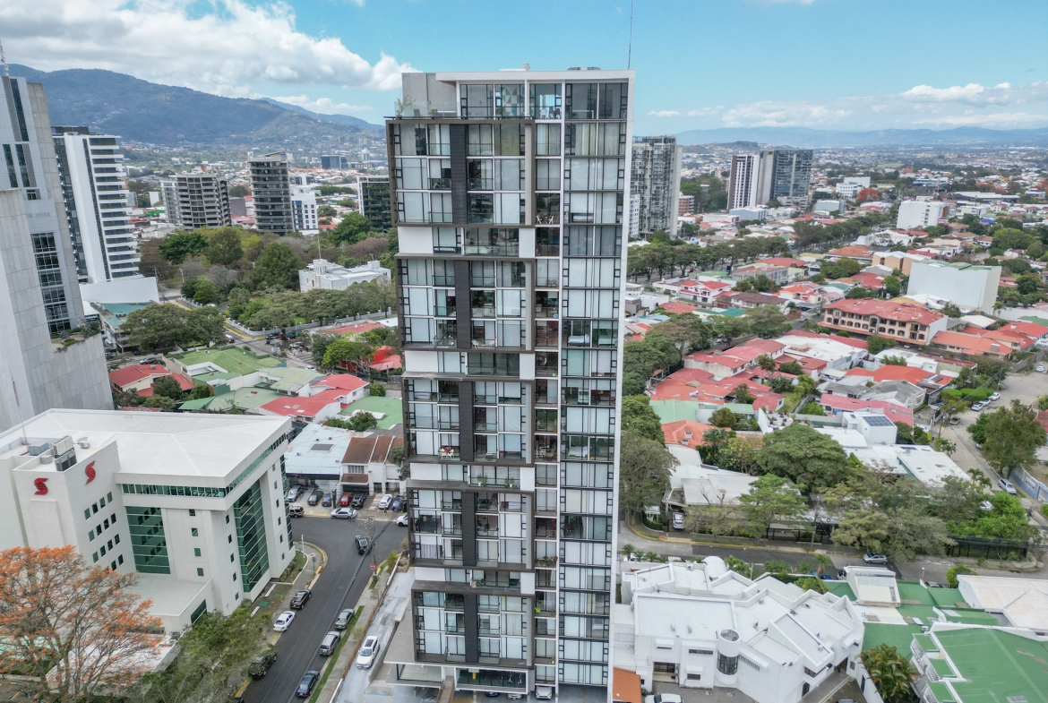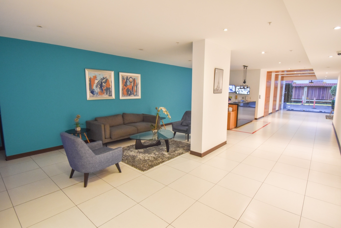Apartamento Amueblado con hermosa vista a la ciudad, el mismo cuenta con 89m2 habitables y se encuentra en un piso 13 y se distribuye de la siguiente manera: