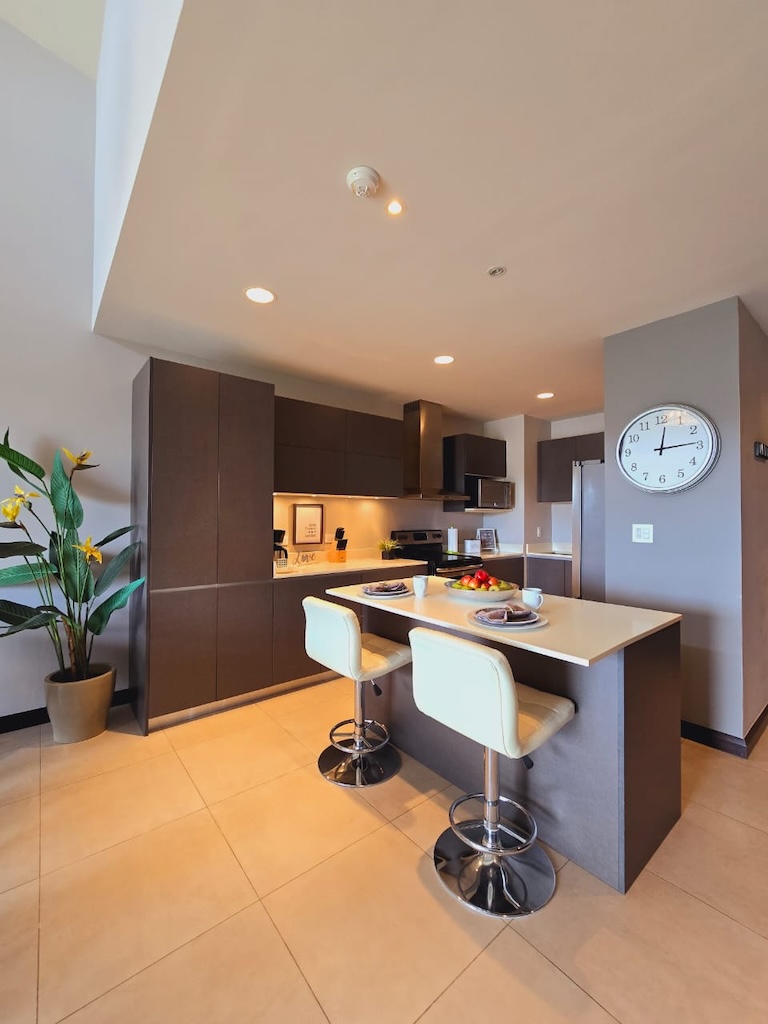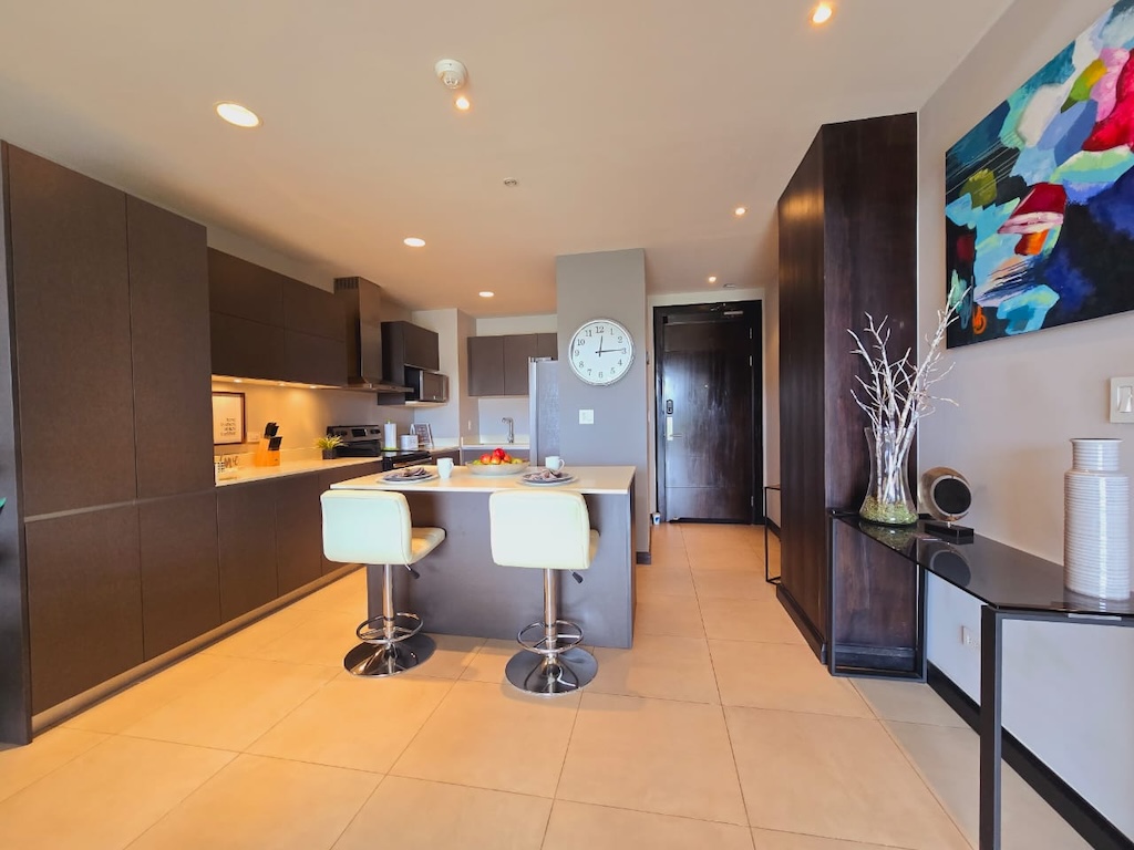 -Cocina con desayunador y línea blanca