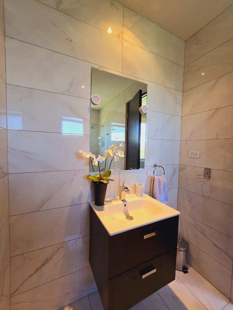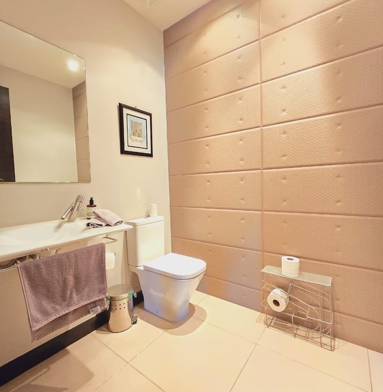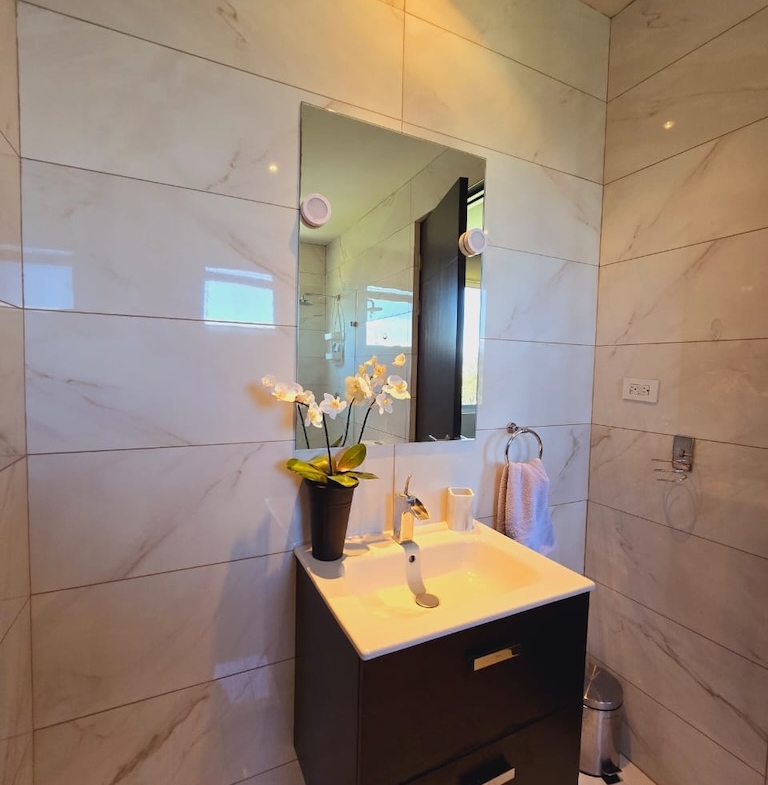-Baño completo compartido entre la habitación secundaria y la oficina