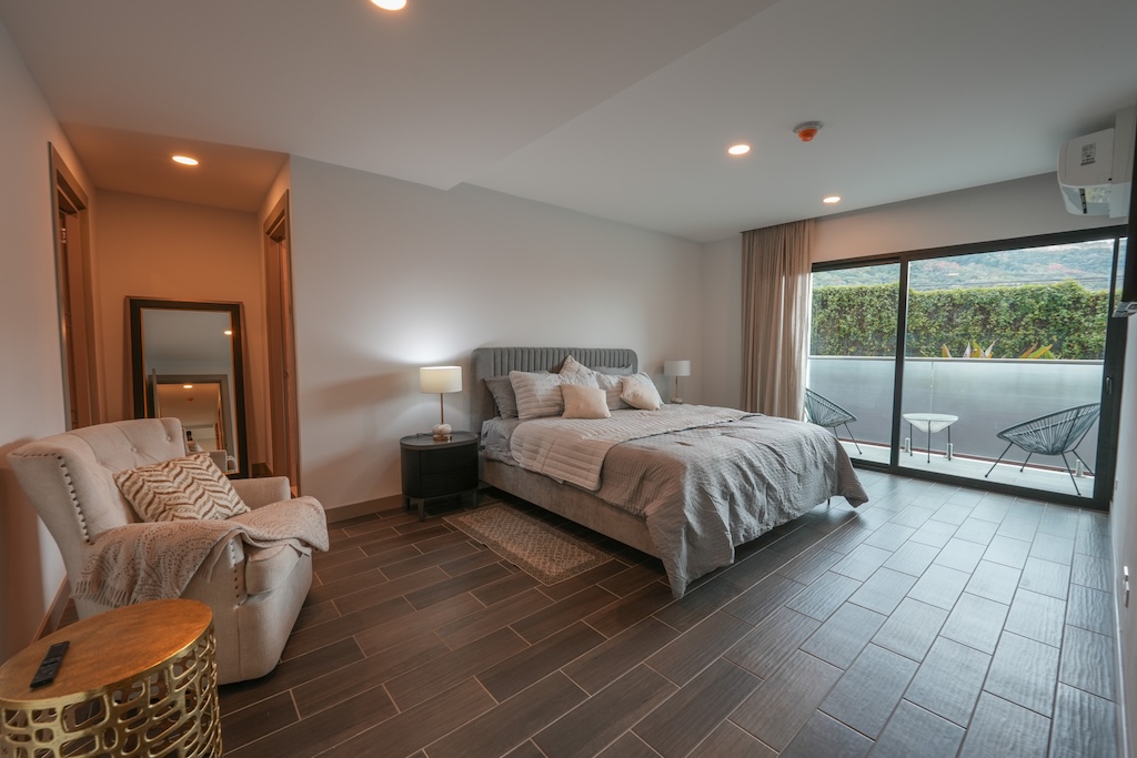 - Habitación principal amplia con espacioso walk in closet, A/C, baño completo con doble lava-manos, balcón