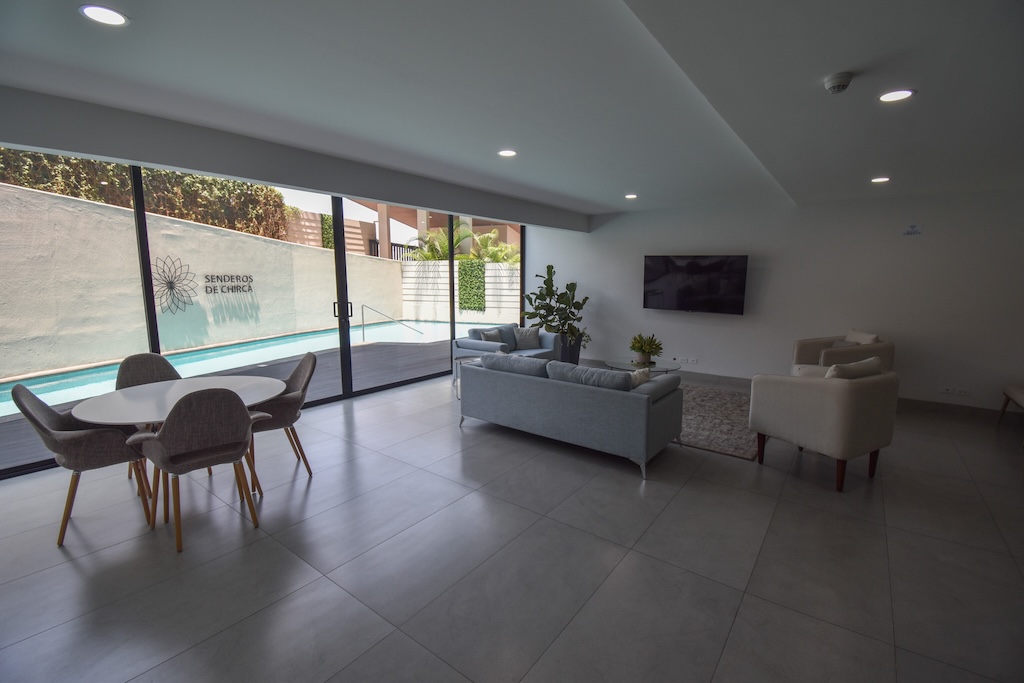 - Sala comedor con hermosa vista a las montañas, cuenta con A/C