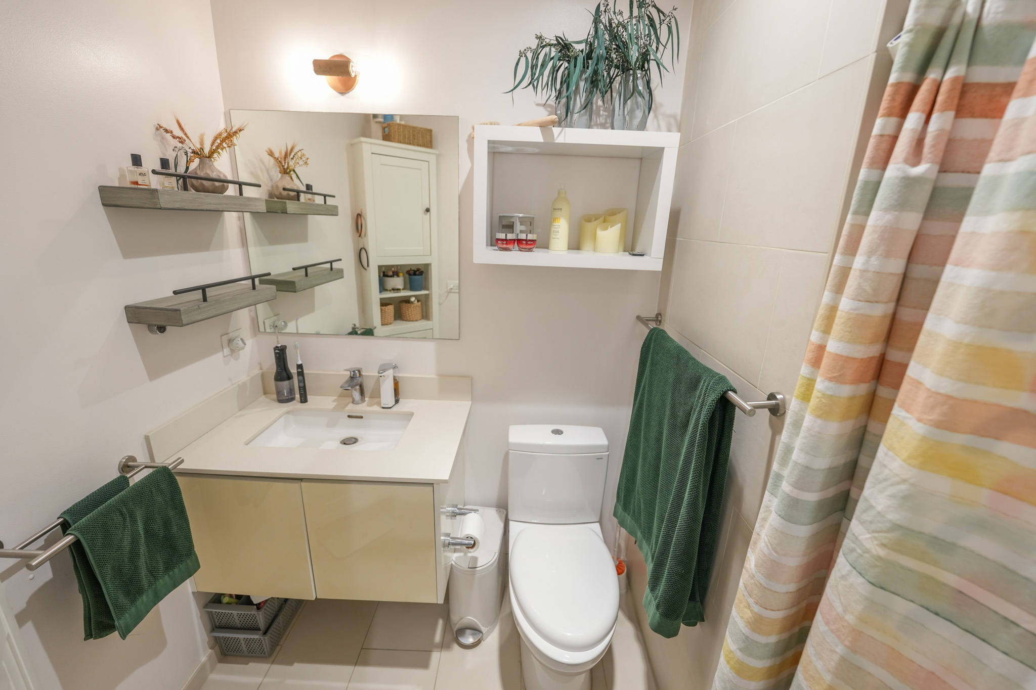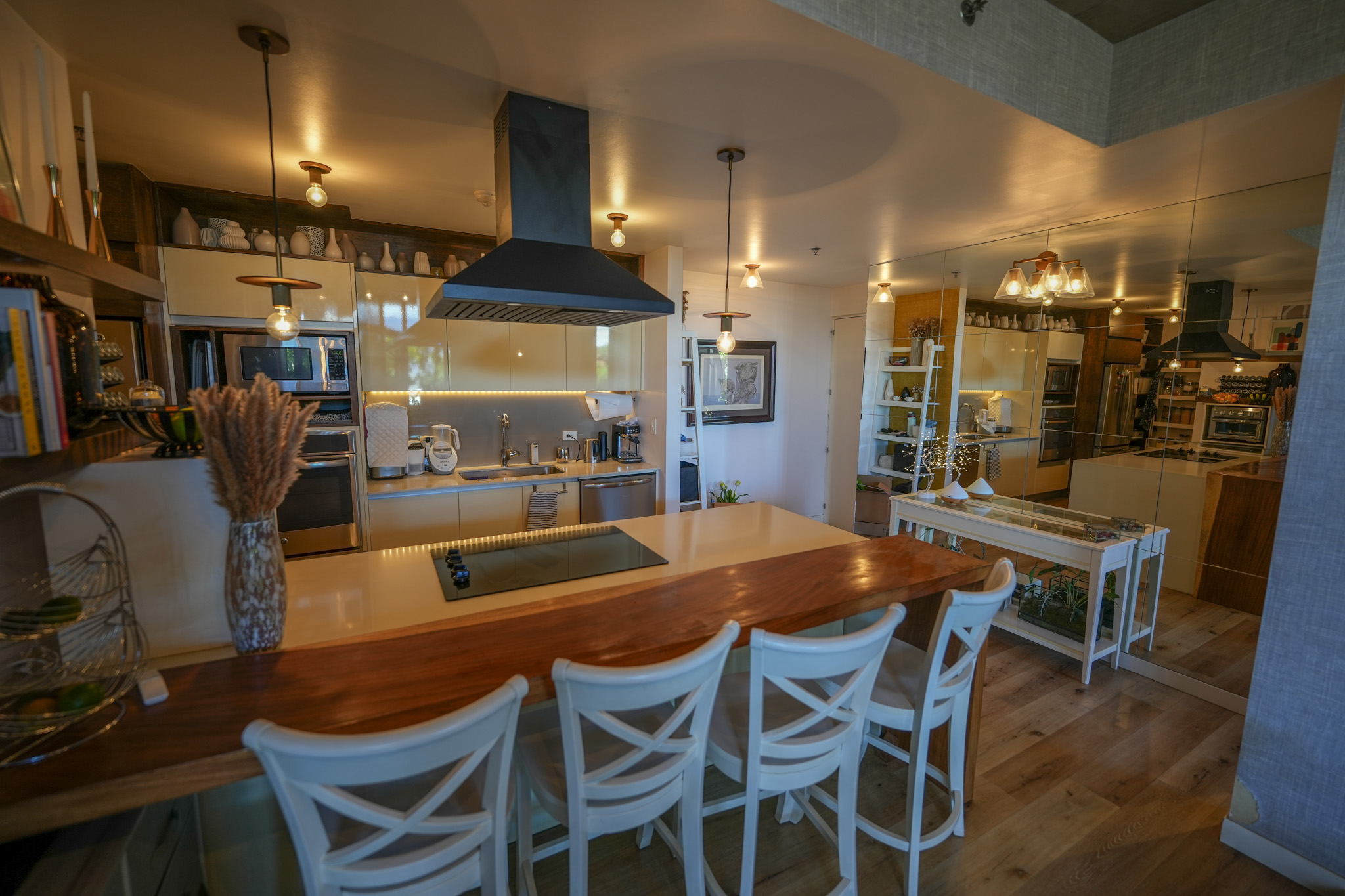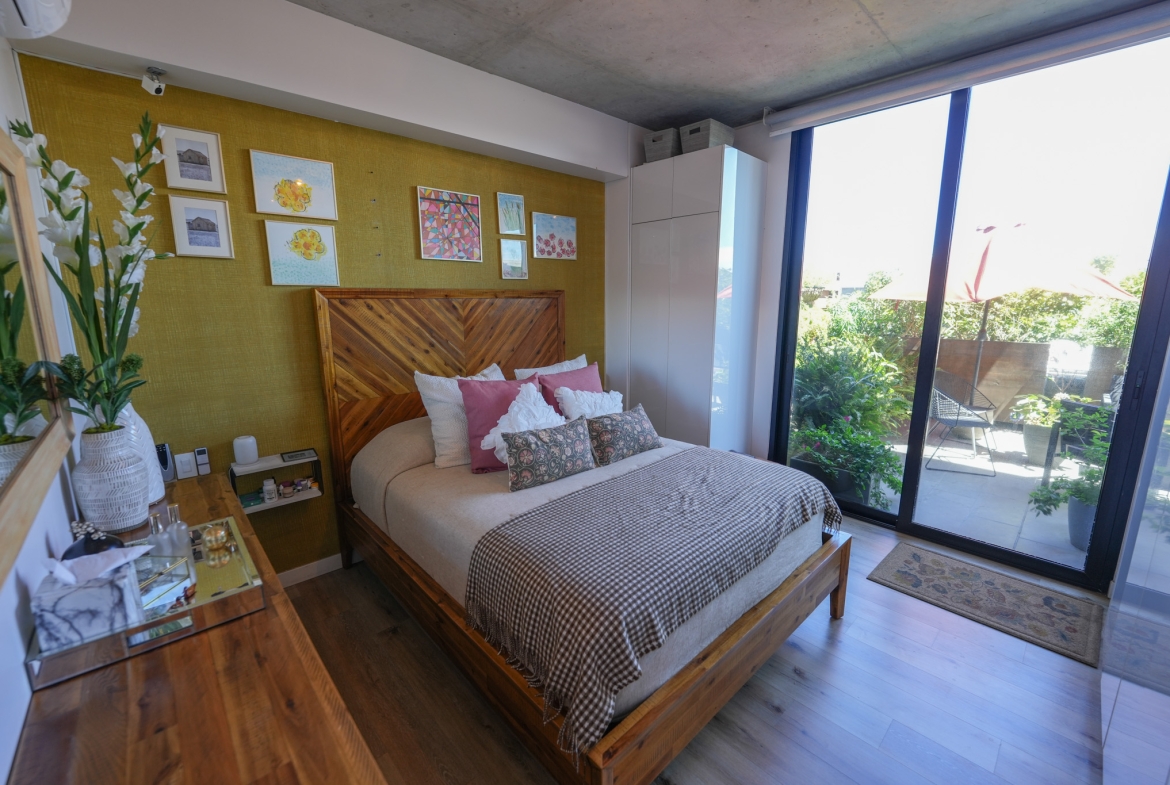 - Acabados de lujo: Muebles de cocina adicionales, triturador de basura (fregadero), cerradura digital Yale, torre para lavadora/secadora, microondas, horno, cocina vitrocerámica, campana extractora, lavavajillas, extensión de barra de desayuno de madera exótica (isla de cocina), pared con espejo, librería en el recibidor, armarios de oficina adicionales, soporte de pared para TV, pisos mejorados (de laminado de PVC a suelo de bambú premium, cortinas black out y de privacidad (sala de estar), jardineras perimetrales de teca grandes en la terraza, jardineras de pared para la terraza, instalación de iluminación en la terraza, decoración con papel tapiz panorámico para la sala de estar (Elitis), armarios adicionales en el dormitorio, aire acondicionado en el dormitorio, armarios grandes en los baños, dispensadores empotrados en los baños.