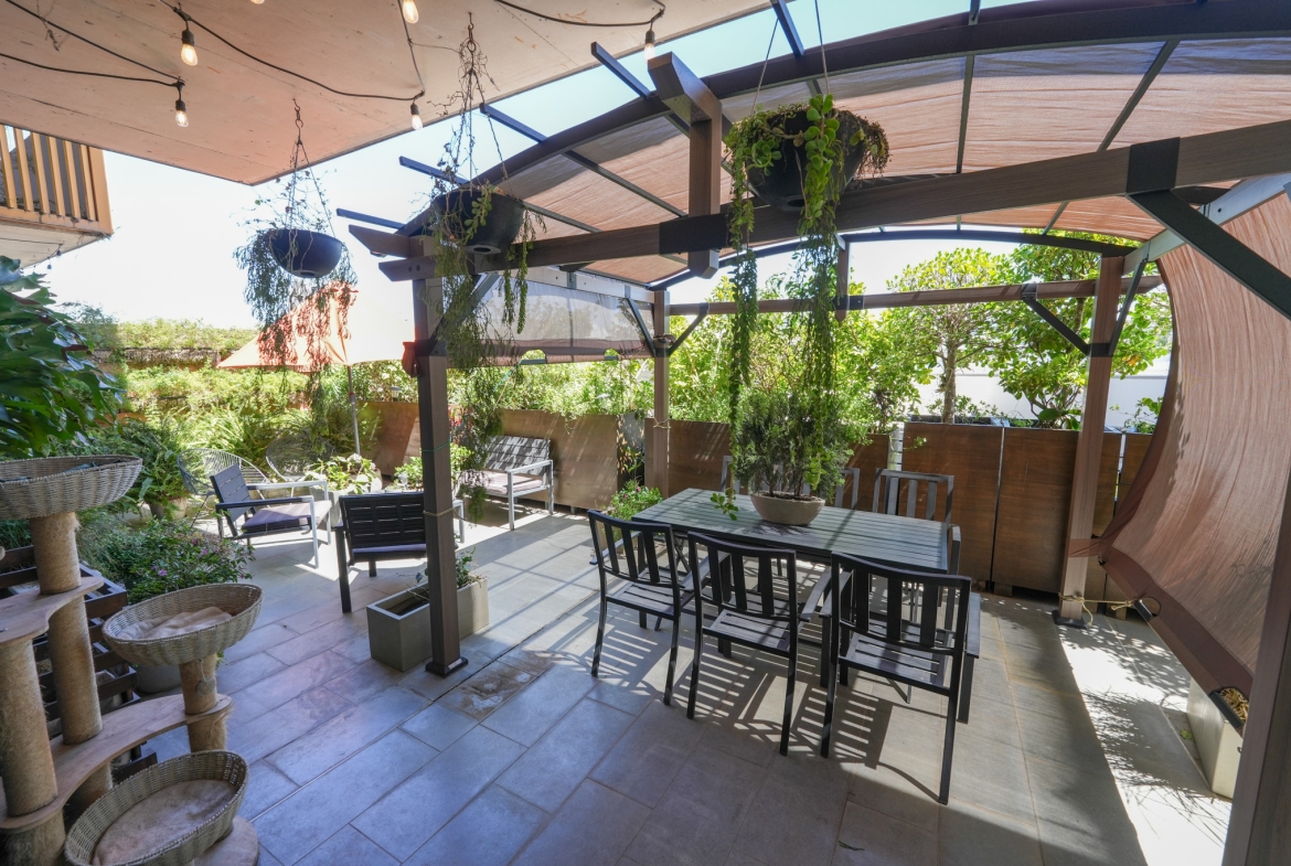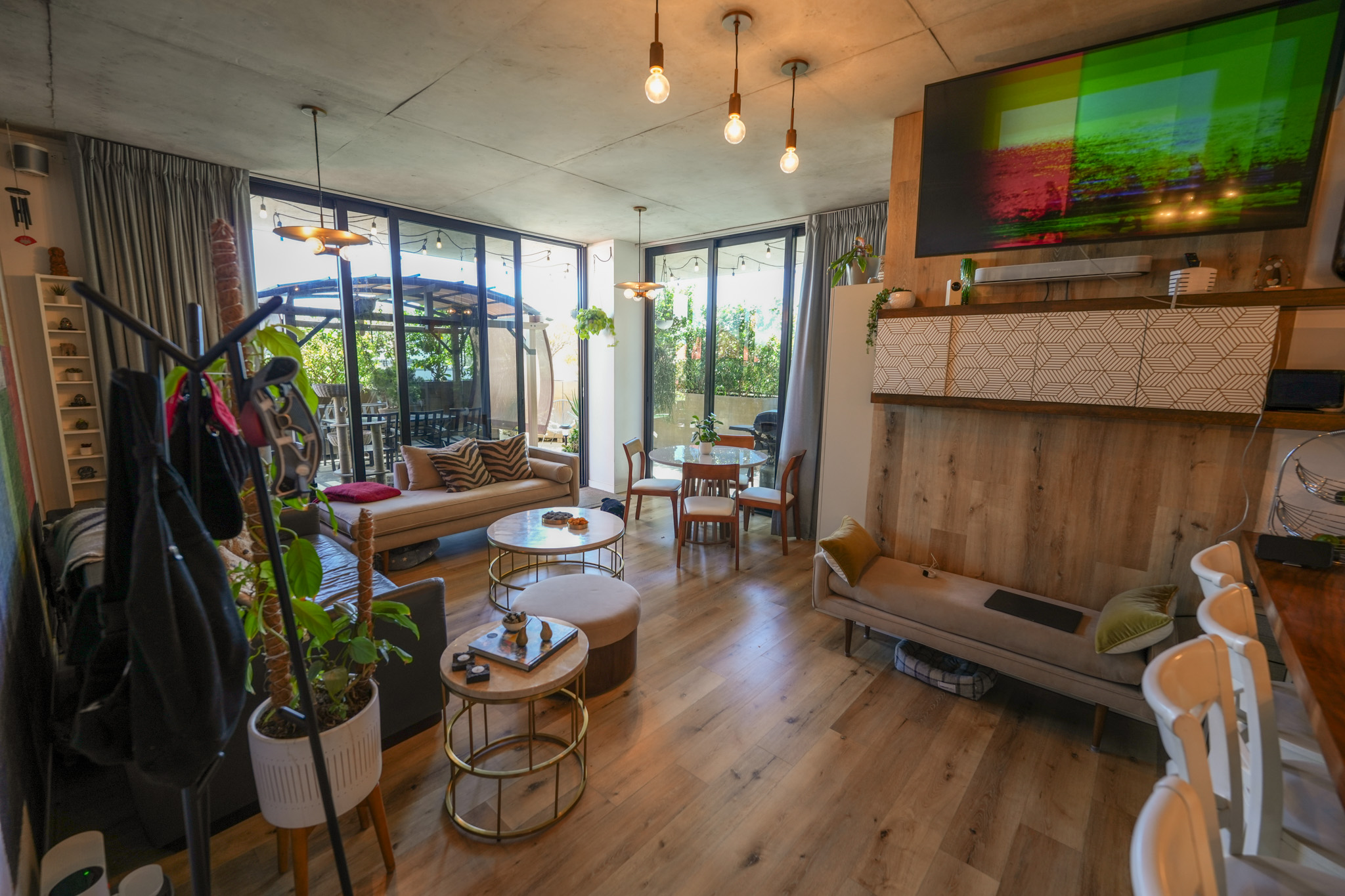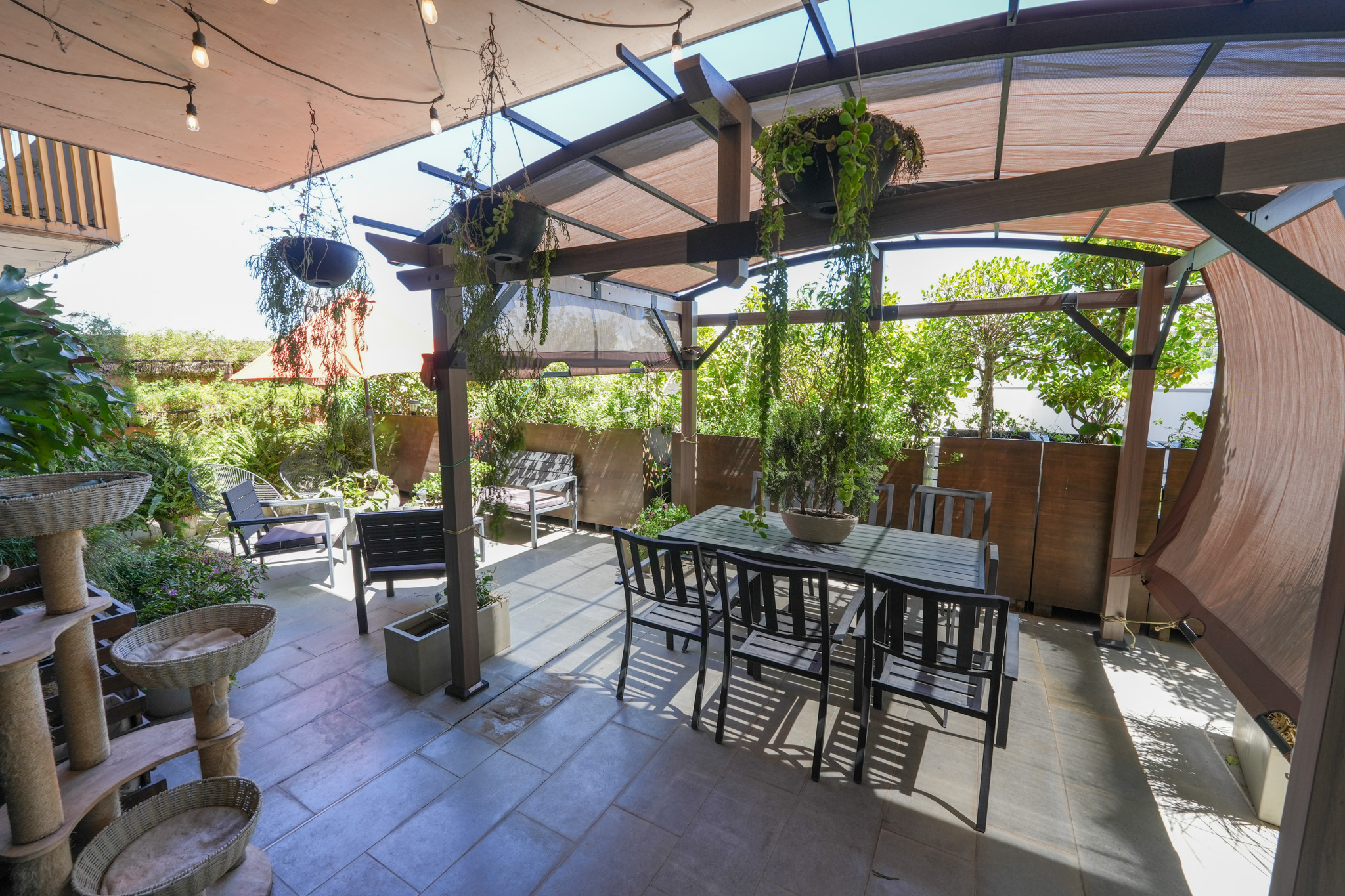 - Acabados de lujo: Muebles de cocina adicionales, triturador de basura (fregadero), cerradura digital Yale, torre para lavadora/secadora, microondas, horno, cocina vitrocerámica, campana extractora, lavavajillas, extensión de barra de desayuno de madera exótica (isla de cocina), pared con espejo, librería en el recibidor, armarios de oficina adicionales, soporte de pared para TV, pisos mejorados (de laminado de PVC a suelo de bambú premium, cortinas black out y de privacidad (sala de estar), jardineras perimetrales de teca grandes en la terraza, jardineras de pared para la terraza, instalación de iluminación en la terraza, decoración con papel tapiz panorámico para la sala de estar (Elitis), armarios adicionales en el dormitorio, aire acondicionado en el dormitorio, armarios grandes en los baños, dispensadores empotrados en los baños.