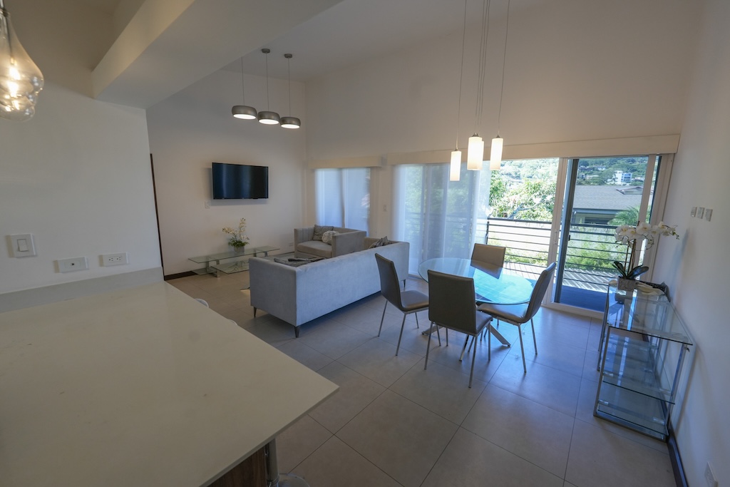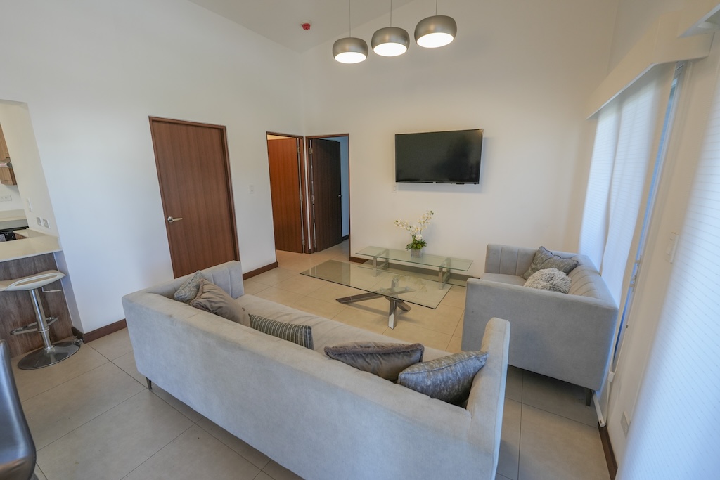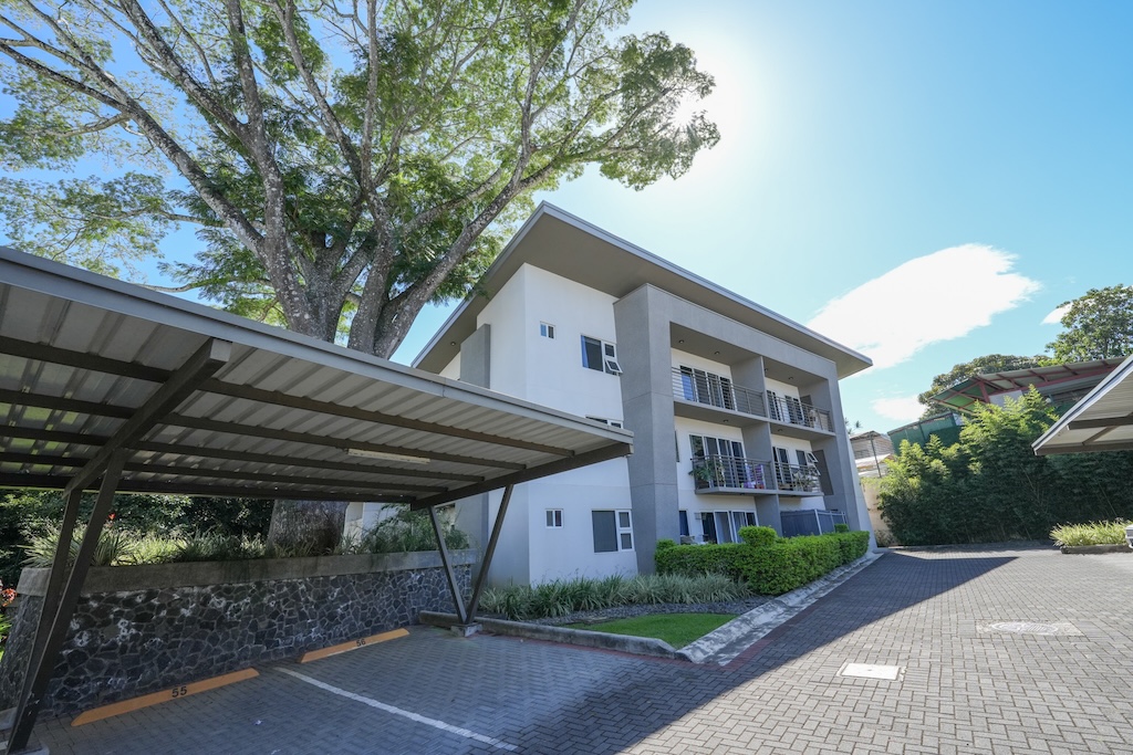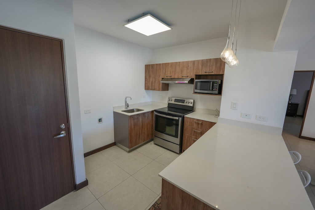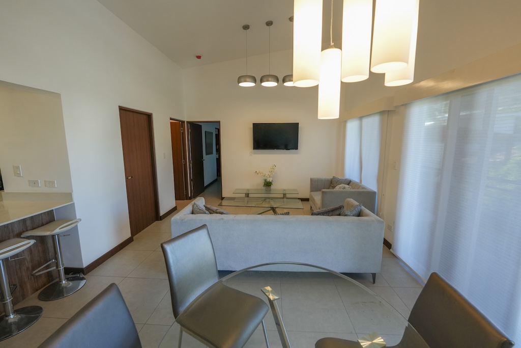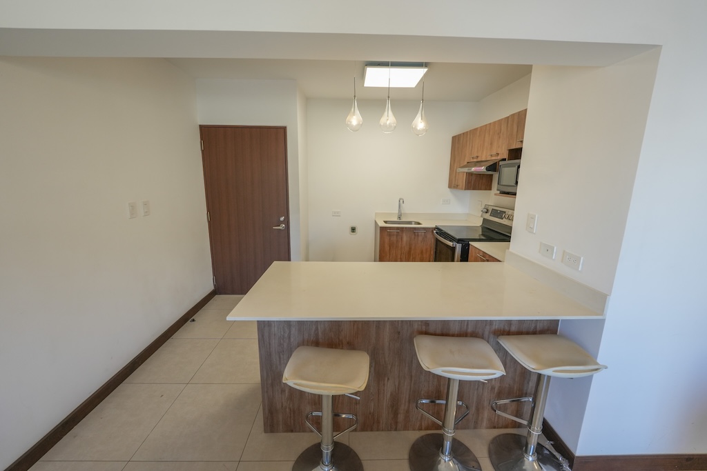 Espacioso apartamento de 1 habitación en Río Oro, Santa Ana el mismo se encuentra en un proyecto de solo 48 unidades y cuenta con 79m2 habitables y 2 espacios de parqueo techado, y el mismo se encuentra en el último nivel y se distribuye de la siguiente manera: