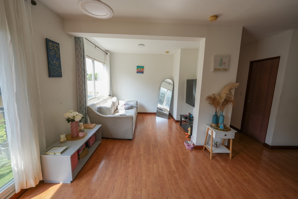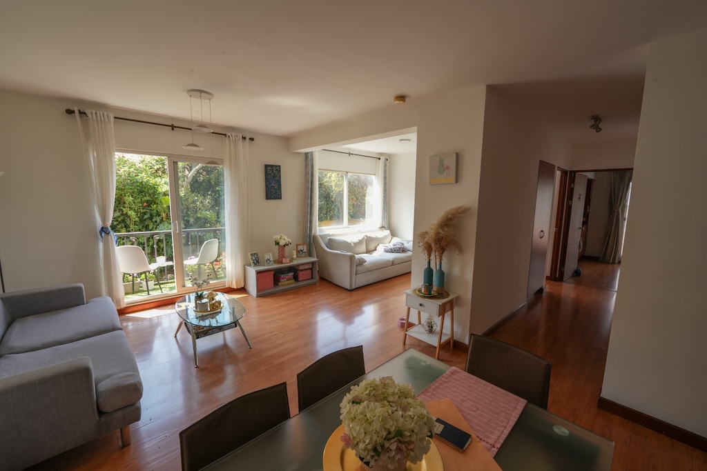 Apartamento de 2 habitaciones ubicado en el Condominio Condado de Baviera, el mismo se encuentra en un piso 3 y cuenta con 84.4m2 habitables + 1 espacio de parqueo techado de 14.3m2 y se distribuye de la siguiente manera: