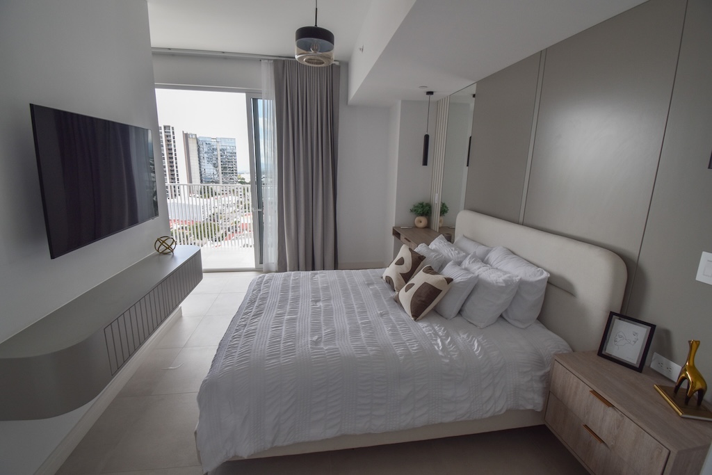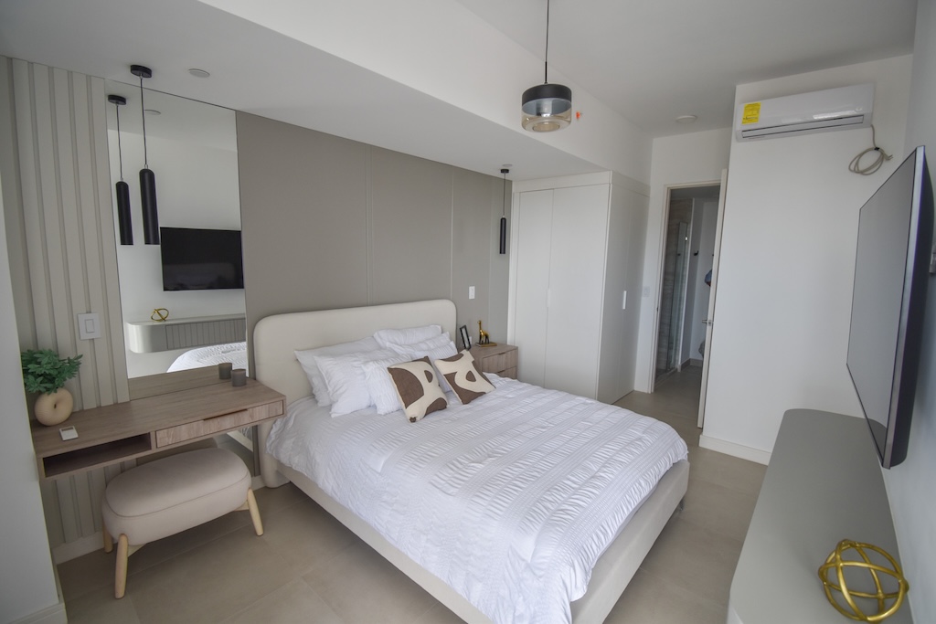 Extras: US$16,500.00 ( incluye: A/C ya instalado, Racks de TV, Cortinas instaladas, centro de lavado, Mamparas, espejos de baño y accesorios, laminados en sala, dormitorio, credenza en sala, mesas de noche tipo tocador en dormitorio, y toda la iluminación tal cuál esta)