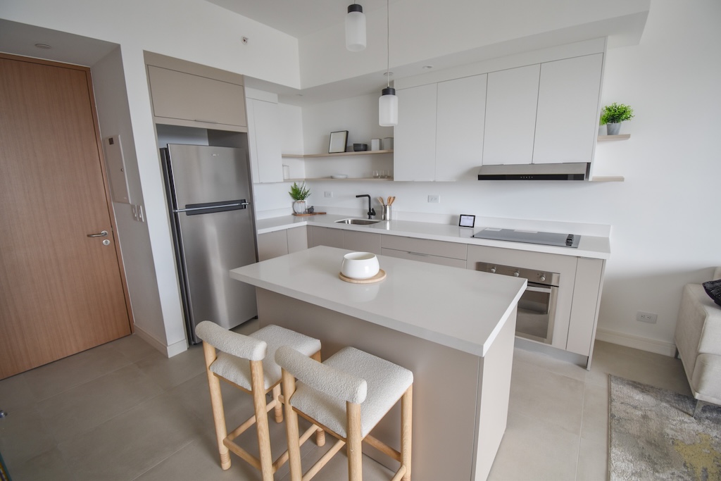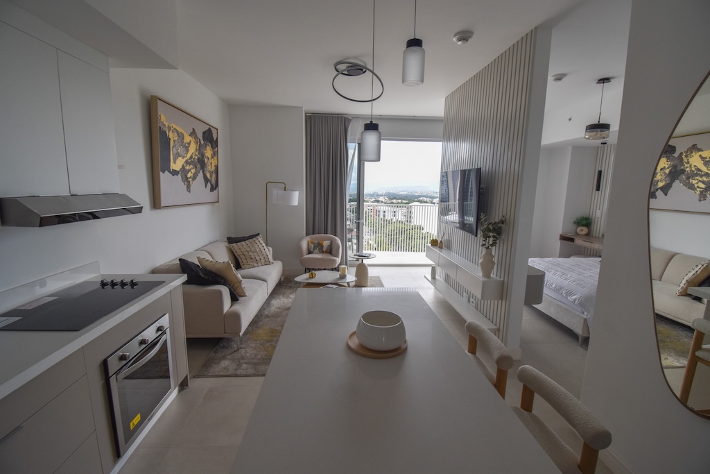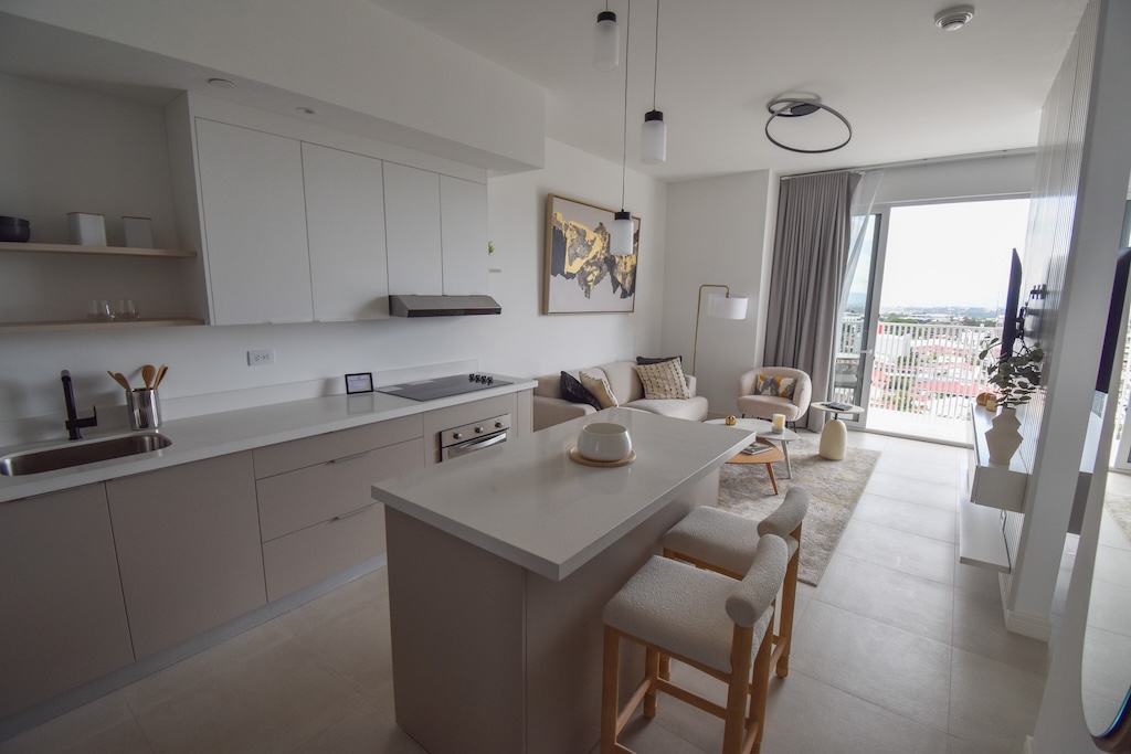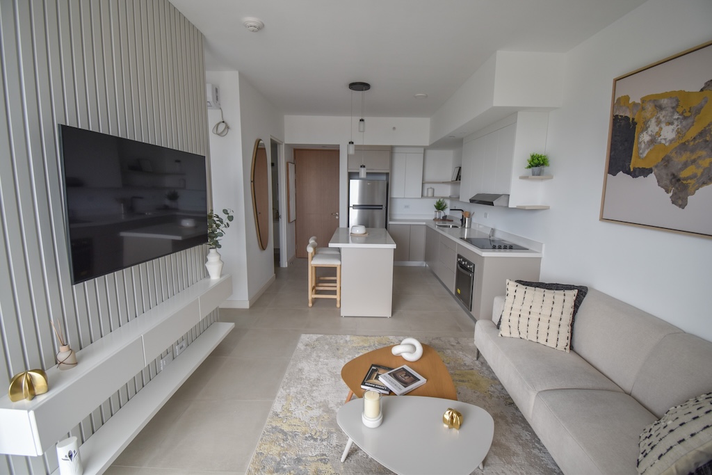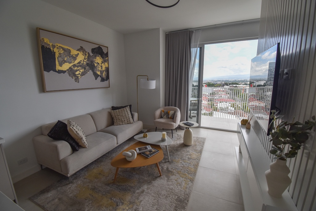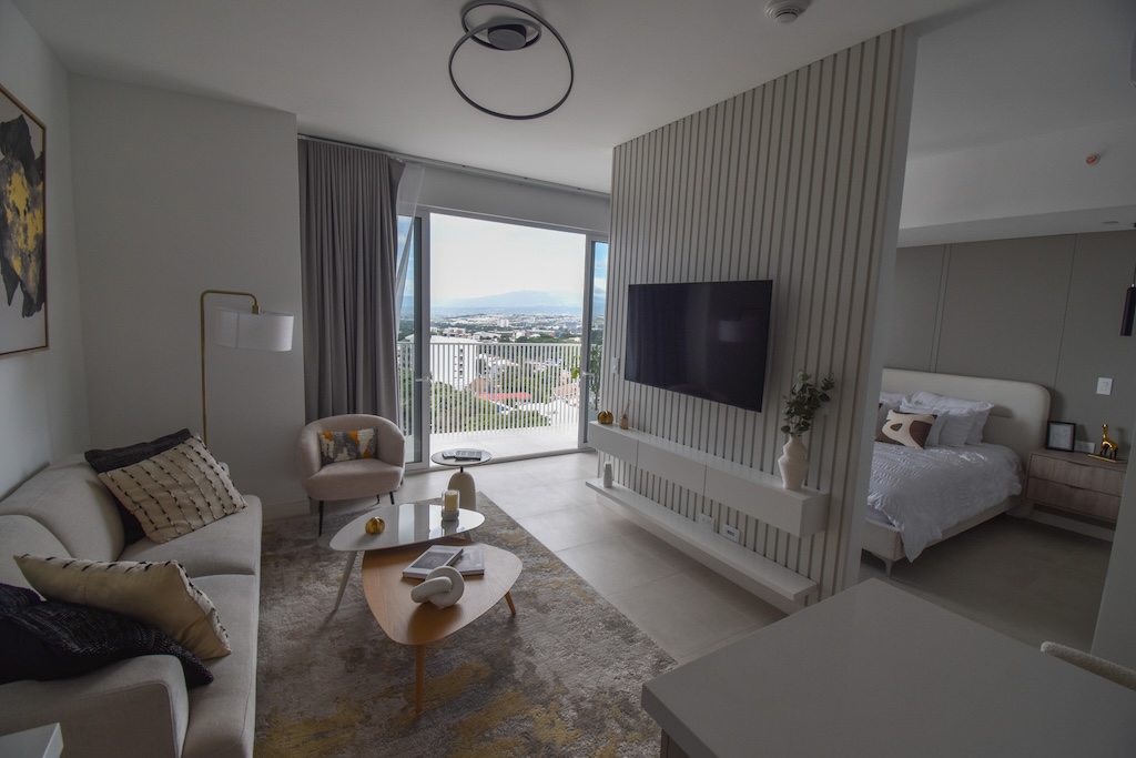 Apartamento tipo Grand Studio cuenta con 45m2 habitables + 10m2 de terraza, y se distribuye de la siguiente manera: