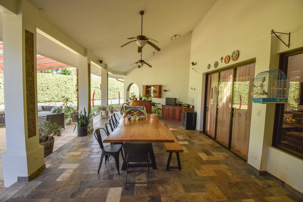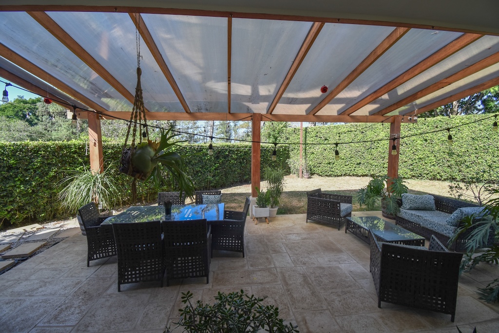 • Terraza techada con área de bar y BBQ, equipada con plantilla de gas, perfecta para reuniones.