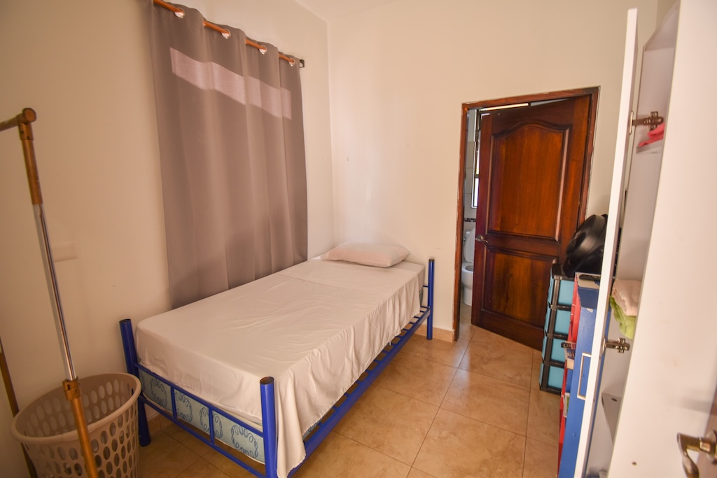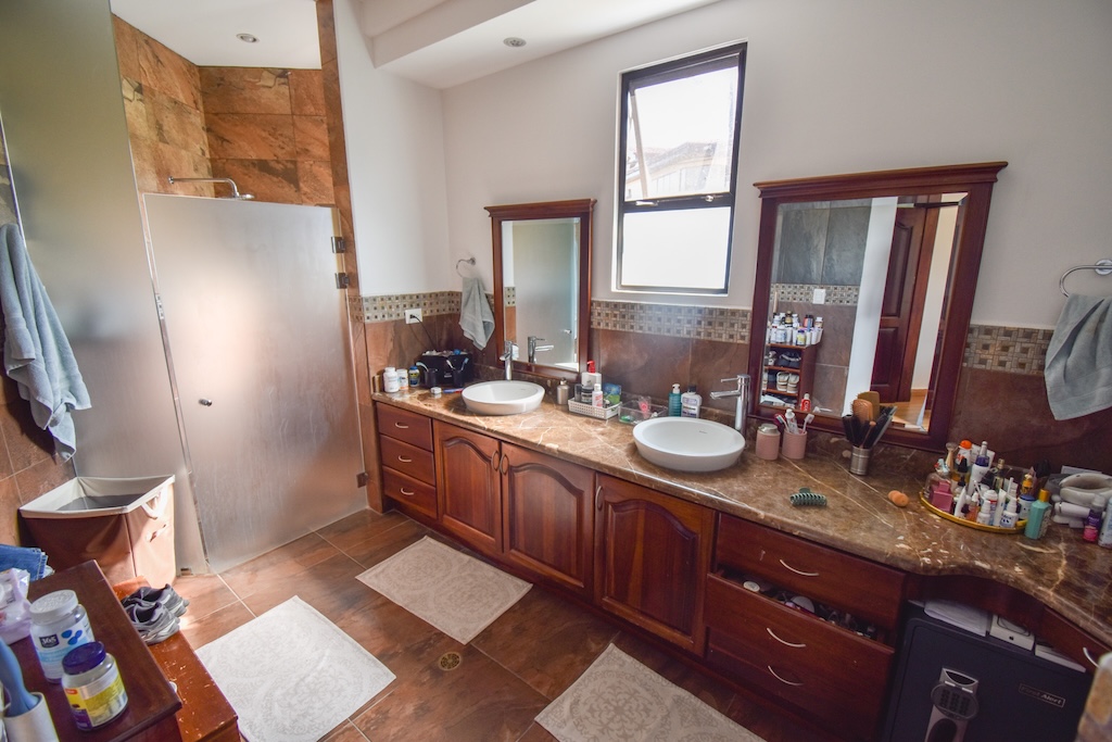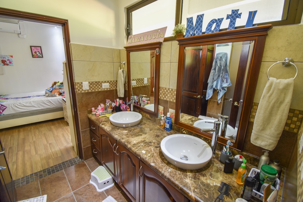 • Dos habitaciones secundarias con aire acondicionado, closet y acceso al patio, compartiendo un baño con doble lavamanos.