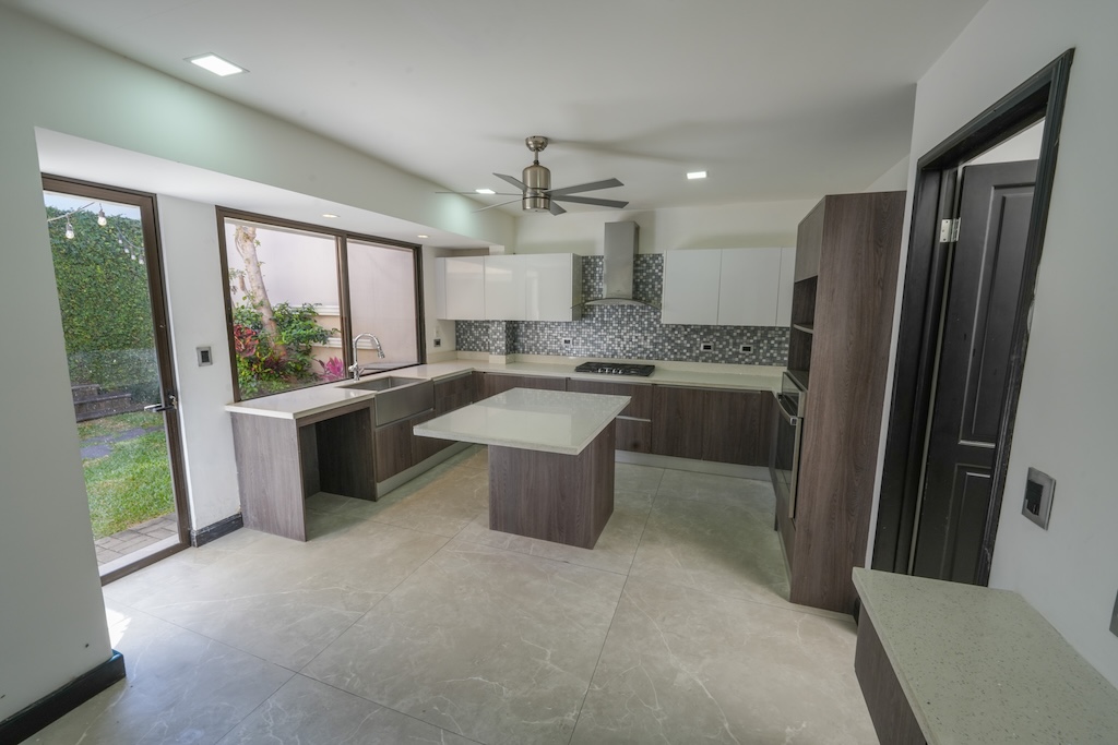 - Cocina con isla con sobres de cuarzo incluye horno eléctrico y plantilla empotrada de gas