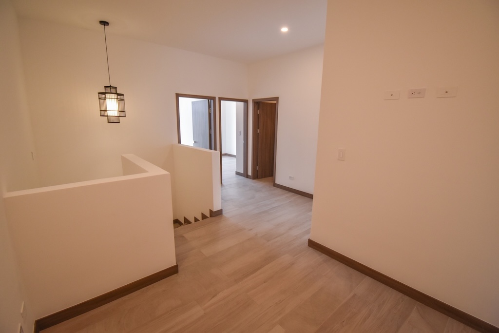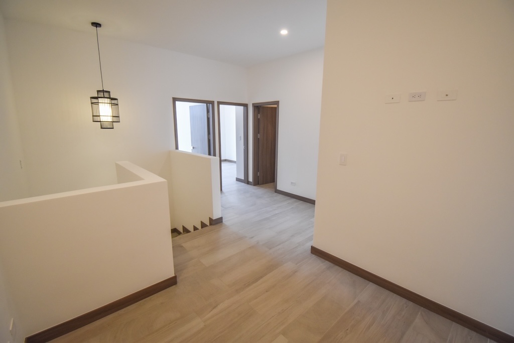 Casa para estrenar de 3 habitaciones en el Condominio Santa Ana Urbano, la misma tiene la ventaja de que no cuenta con casa al frente ni casa atrás, la misma cuenta con una medida de 176m2 de construcción en dos niveles que se distribuyen de la siguiente manera: