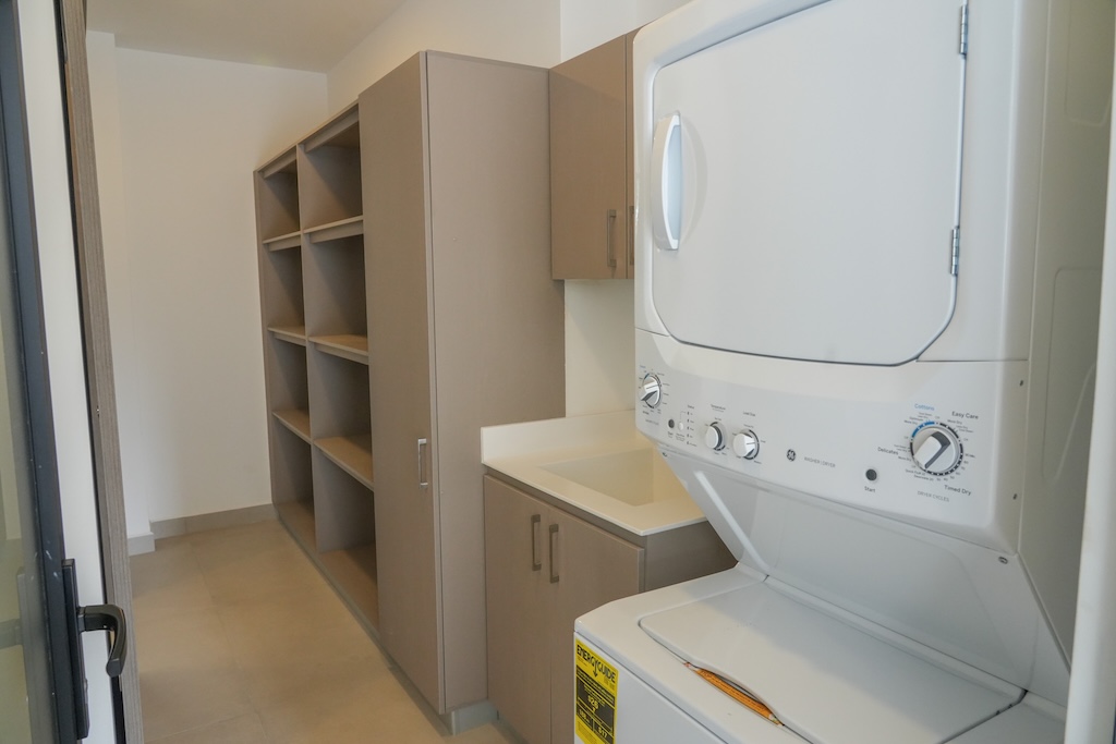 • 🧺 Área de lavandería con lavadora y secadora en torre