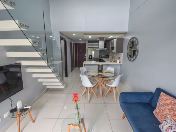 ¡Este elegante apartamento Loft en Avenida Escazú es simplemente impresionante!
