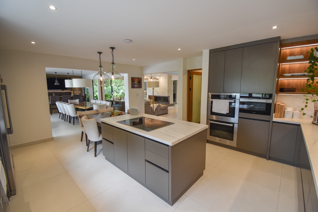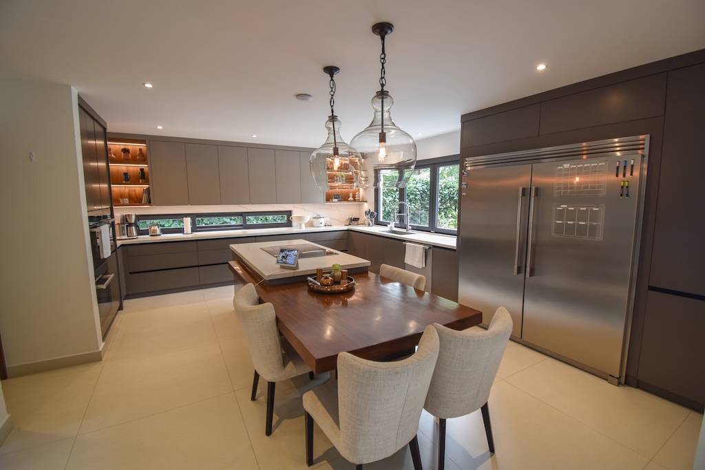 👩🍳 Cocina de lujo con desayunador, plantilla, torre de hornos, lavaplatos y alacena